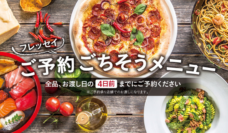 フレッセイの商品がPCやスマホから簡単注文、【お店で受取り(ごちそう予約等)】【ネットで発送】のご注文ができるネット予約サイトです。まだご登録がお済でないお客様はぜひご登録お願いします。
