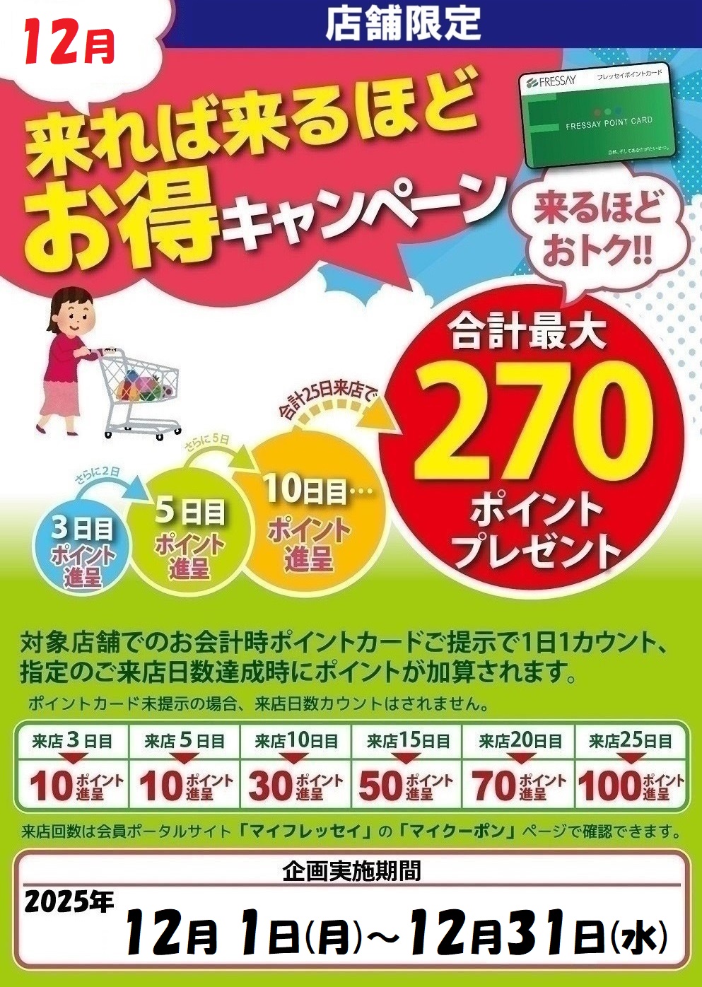 12月 対象店舗限定「来れば来るほどお得キャンペーン」!