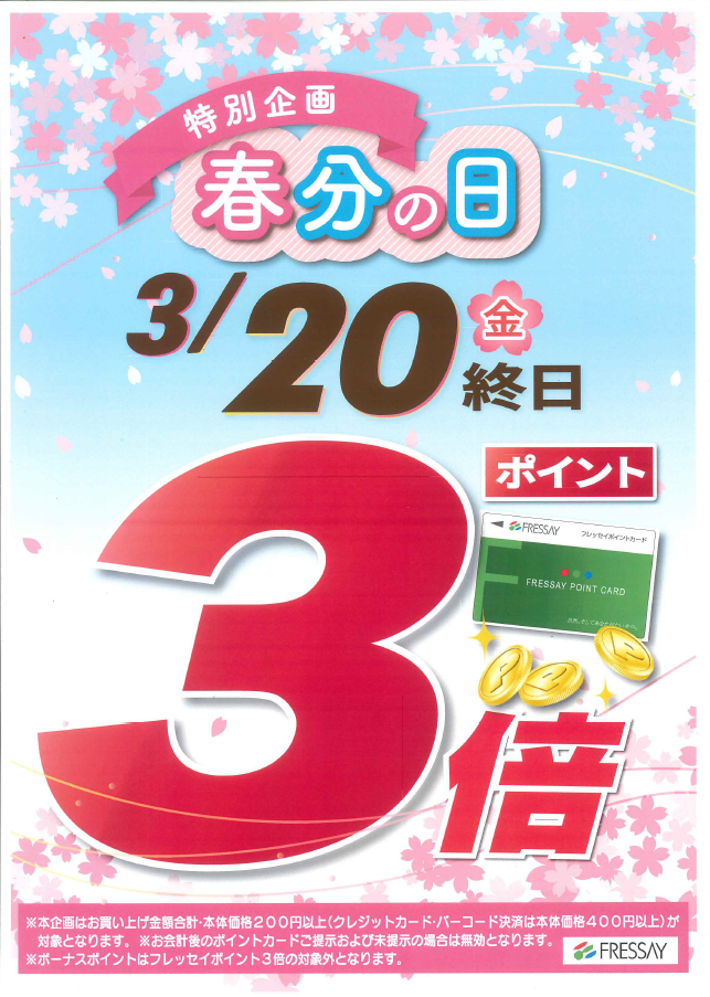 3月20日(金) 春分の日特別企画で