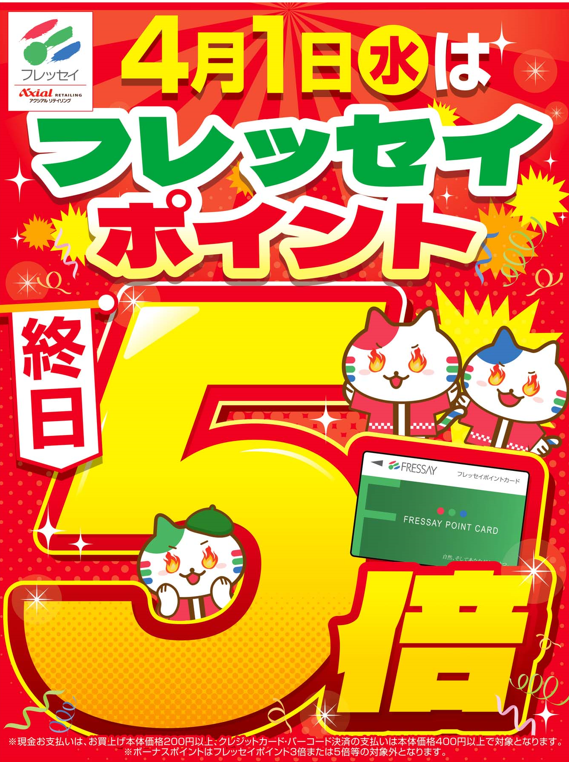 4月1日 特別企画ポイント5倍開催! 嘘のような本気の5倍!