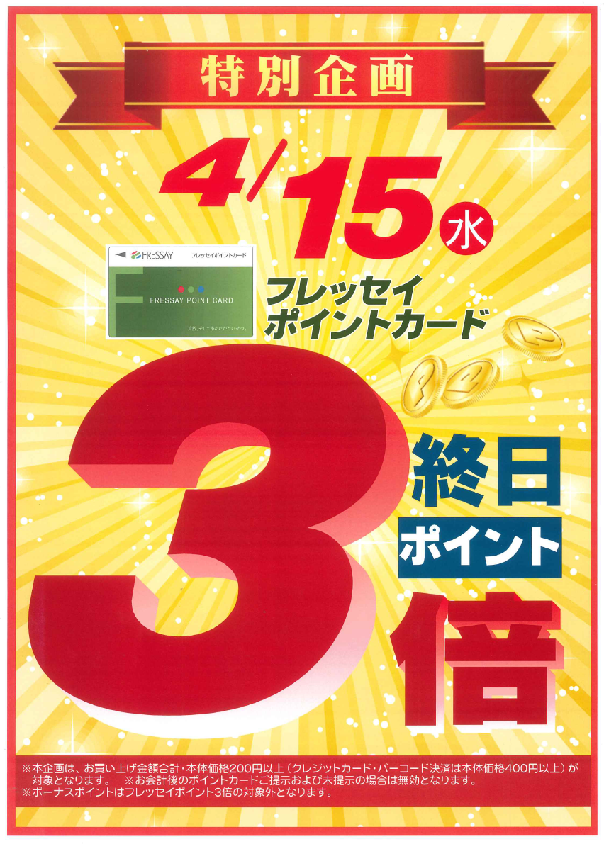 4月15日(水) 特別ポイント企画で