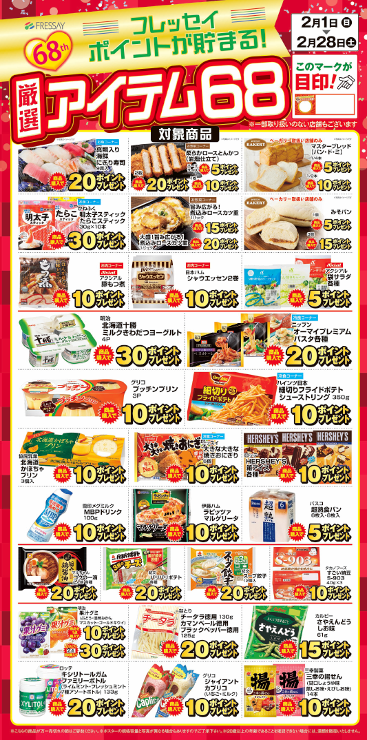 【フレッセイ スーパーマーケット創業68周年】フレッセイポイントが貯まる!「厳選アイテム68(ボーナスポイント商品)」開催