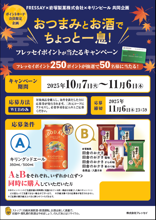 おつまみとお酒でちょっと一息!フレッセイポイントが当たるキャンペーン