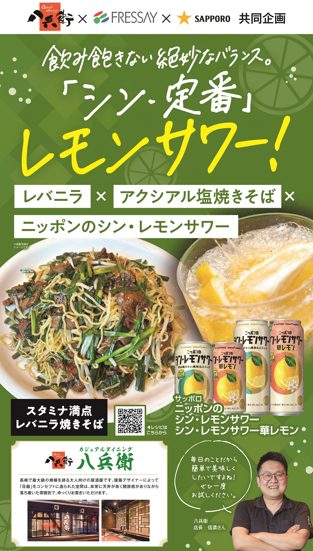 【八兵衛×SAPPORO×フレッセイ共同企画】「シン・レモンサワー」と「シン・おつまみ」を楽しもう!