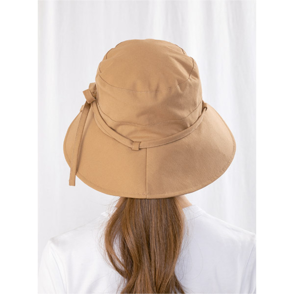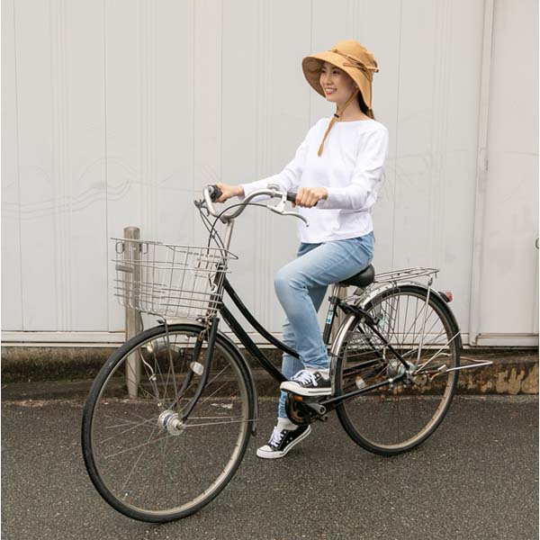 自転車用ヘルメット付きUVつば広リボンハット ベージュ