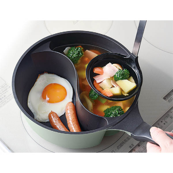 スープとおかず、朝食の準備がこれ1つで!曲線の仕切りでお玉も使いやすい。