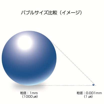 水にバブルが含まれることにより、気泡径0.001mmの超微細泡が発生。