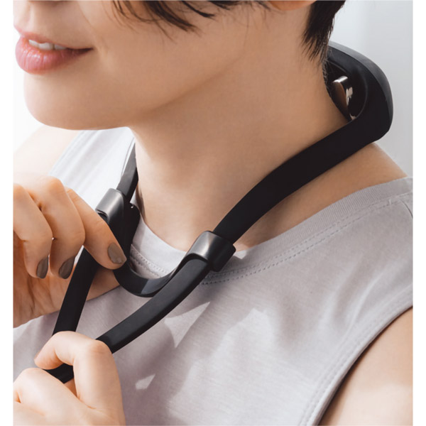 2つの通電パッドから首まわりの筋肉に低周波の電流が流れます。
